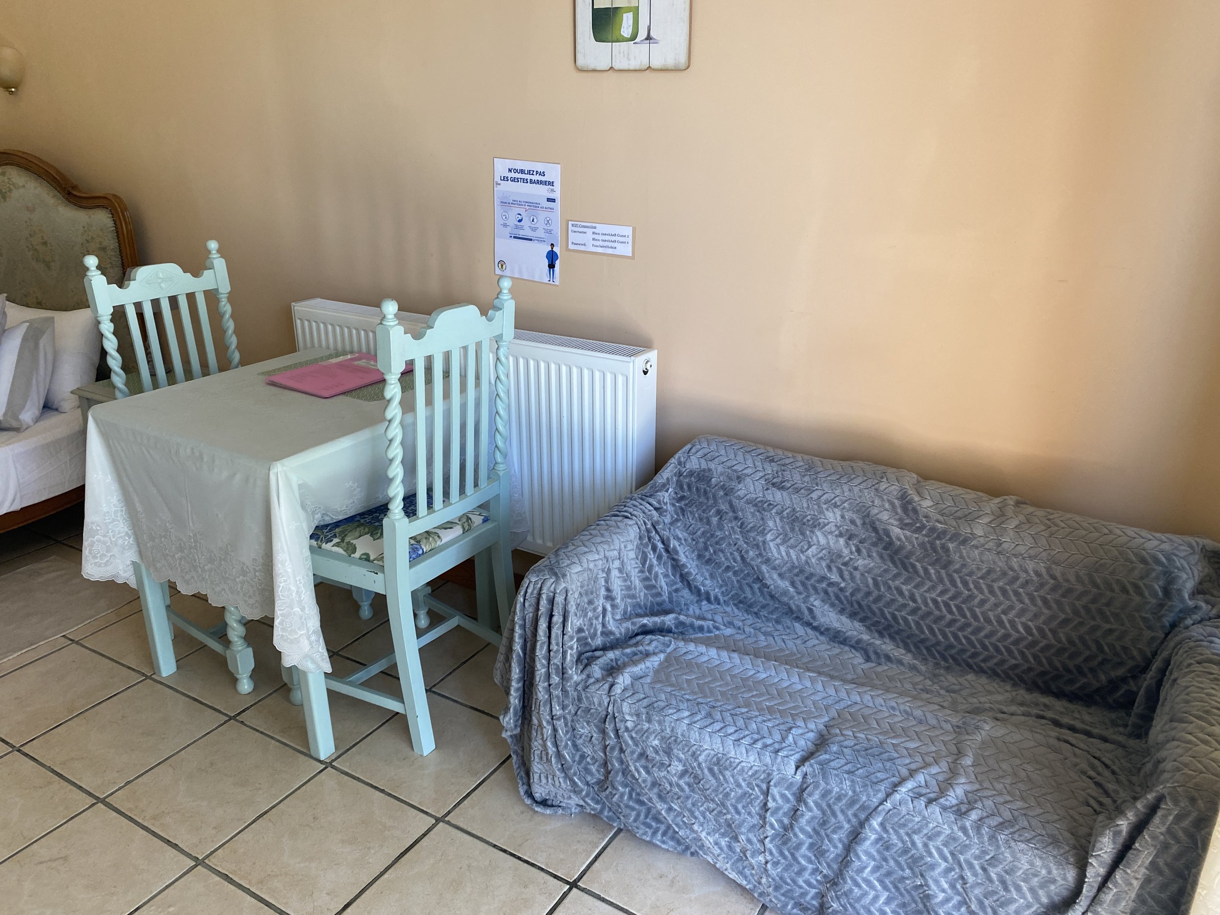 Gite le Vigneron (Winemakers Cottage) is a studio gite and comes with an open plan double bedroom suitable for 2 people. The gite has its own private terrace shower room with toilet and a kitchenette with breakfast bar. Cots can be added on request.
